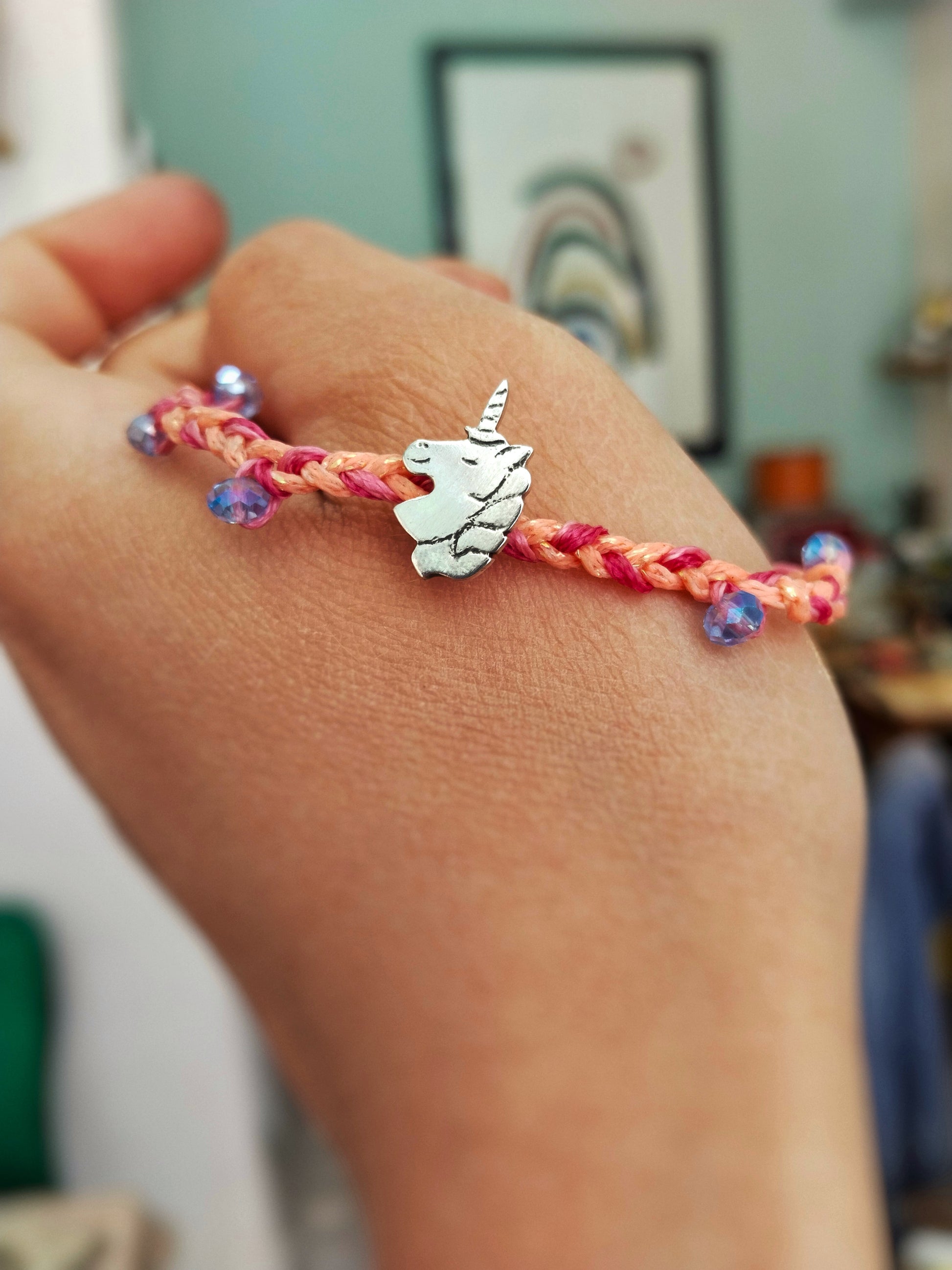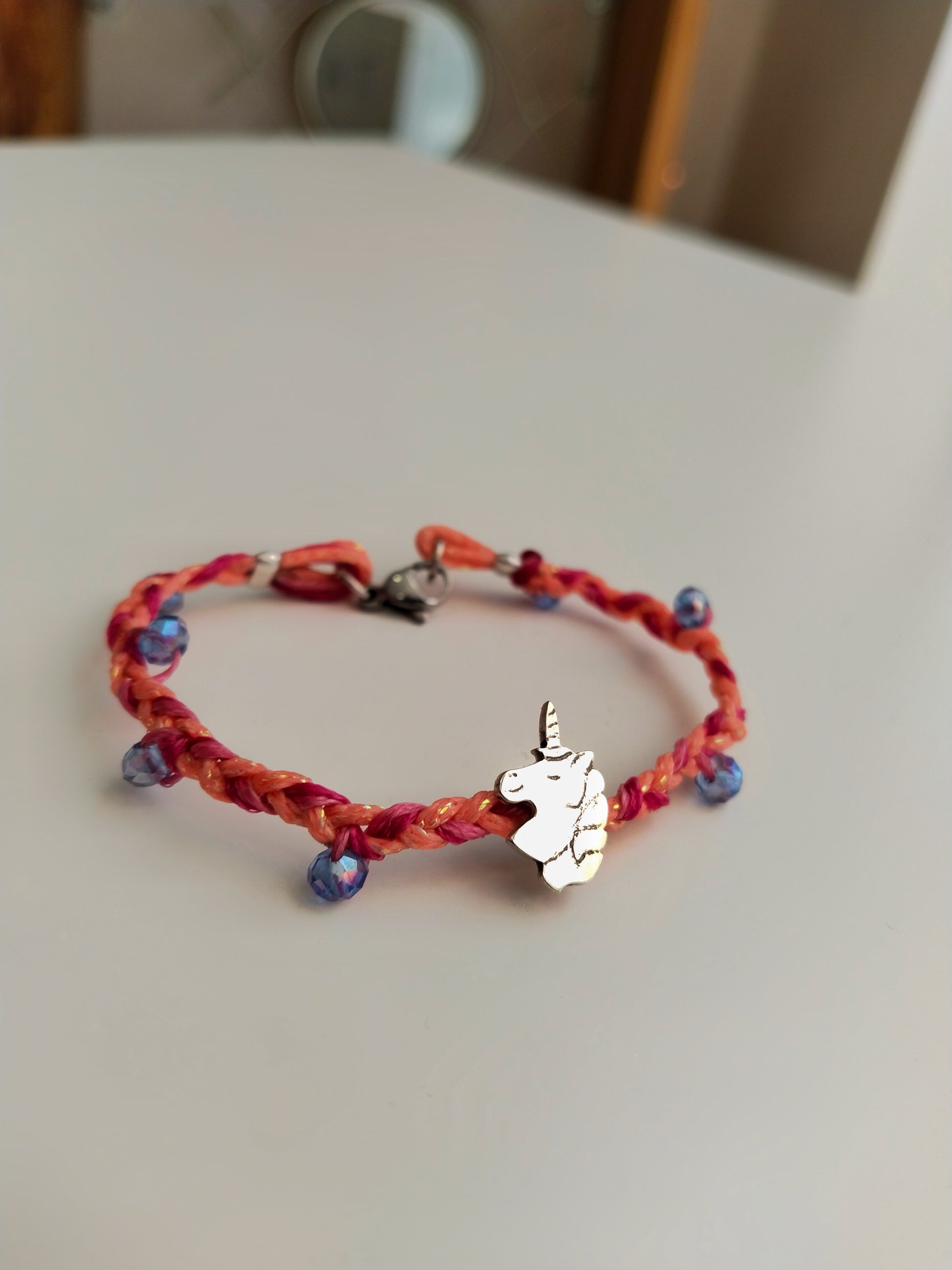 Βραχιόλι μονόκερος, με χάραξη στο χέρι. Ένα κόσμημα για μια μικρή δεσποινίδα, παραγγελμένο από τον μπαμπά της για να της το χαρίσει.