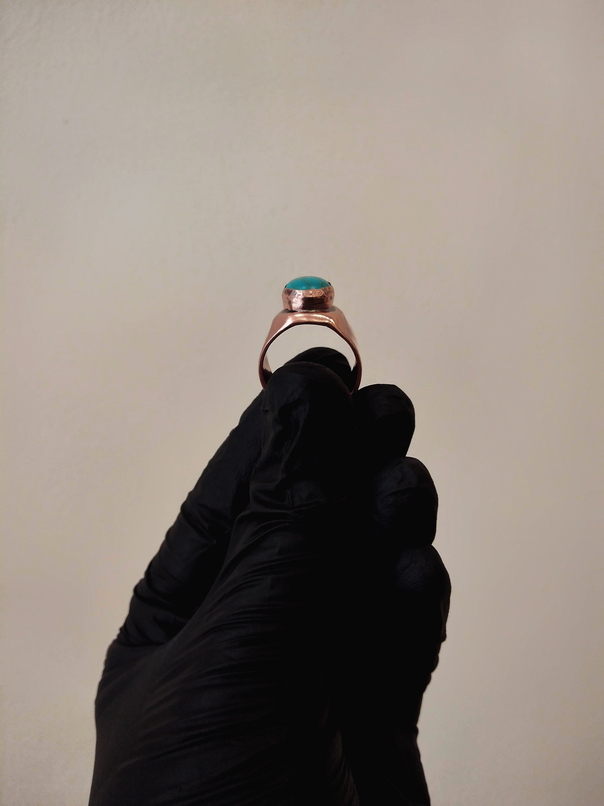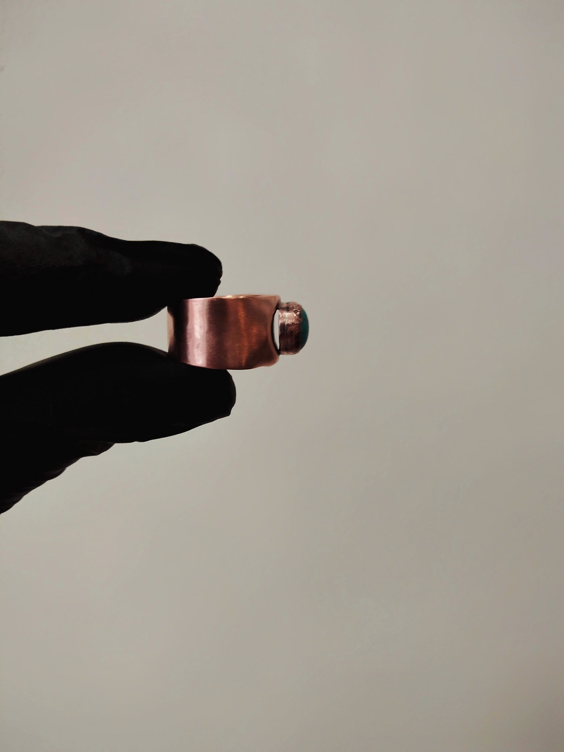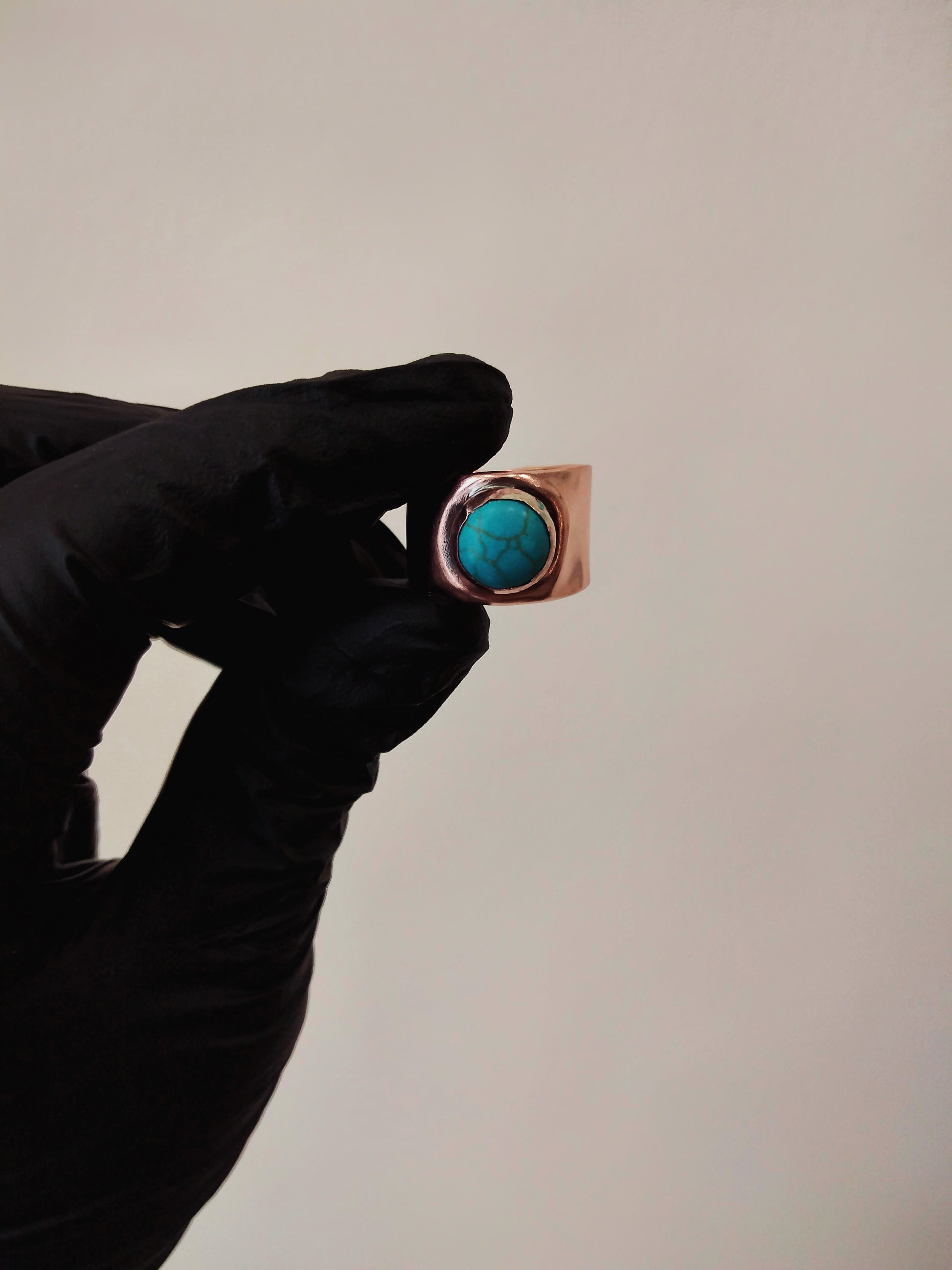 Αντρικό δαχτυλίδι με πέτρα τιρκουάζ 10 χιλιοστών, κατασκευασμένο από επαναχρησιμοποιημένο χαλκό. Σχεδιασμένο και φτιαγμένο αποκλειστικά για τον ίδιο.