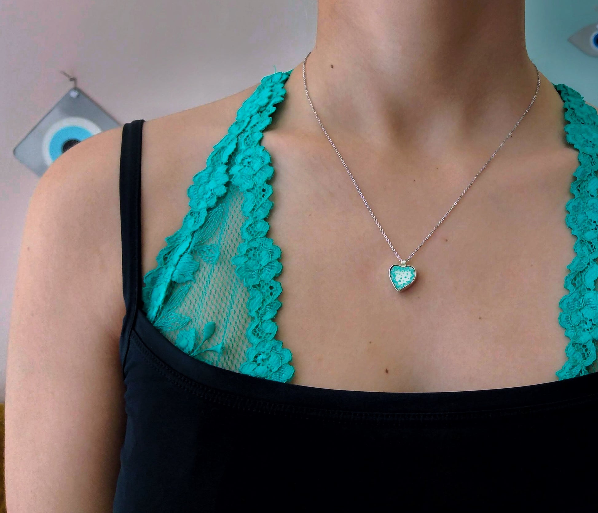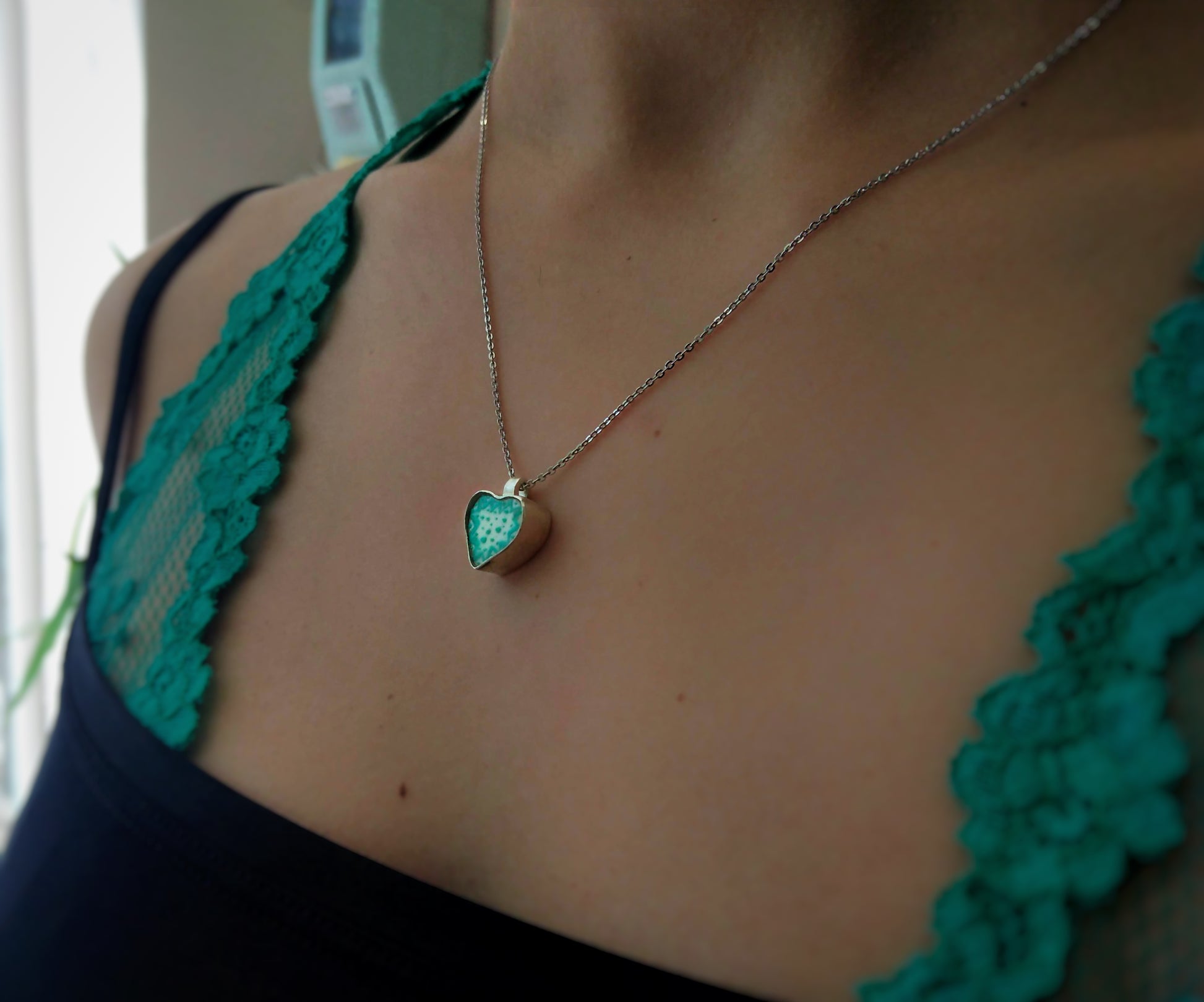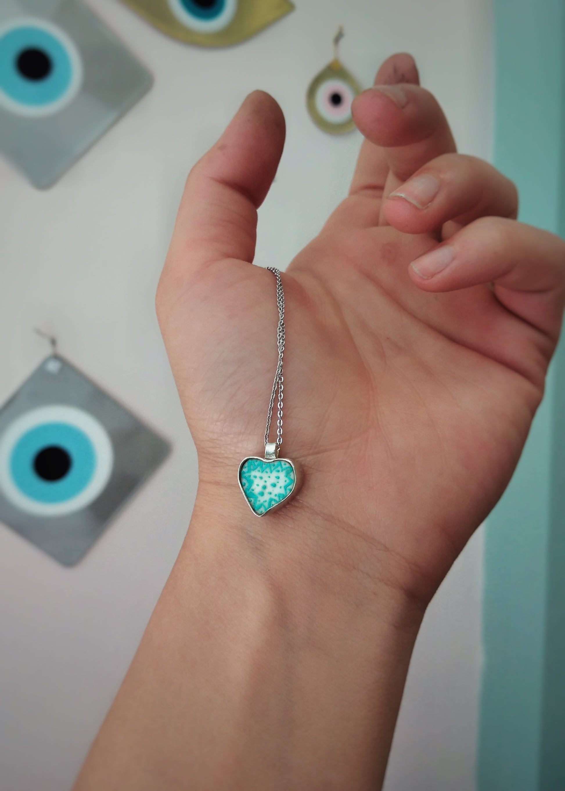 Μια καρδιά από ασήμι, με κόκαλο στο εσωτερικό της, ζωγραφισμένο στο χέρι με λεπτά μοτίβα. Ένα δώρο φτιαγμένο για τη σύζυγό του, για να της θυμίσει την αγάπη του σε μια απλή, καθημερινή μέρα.